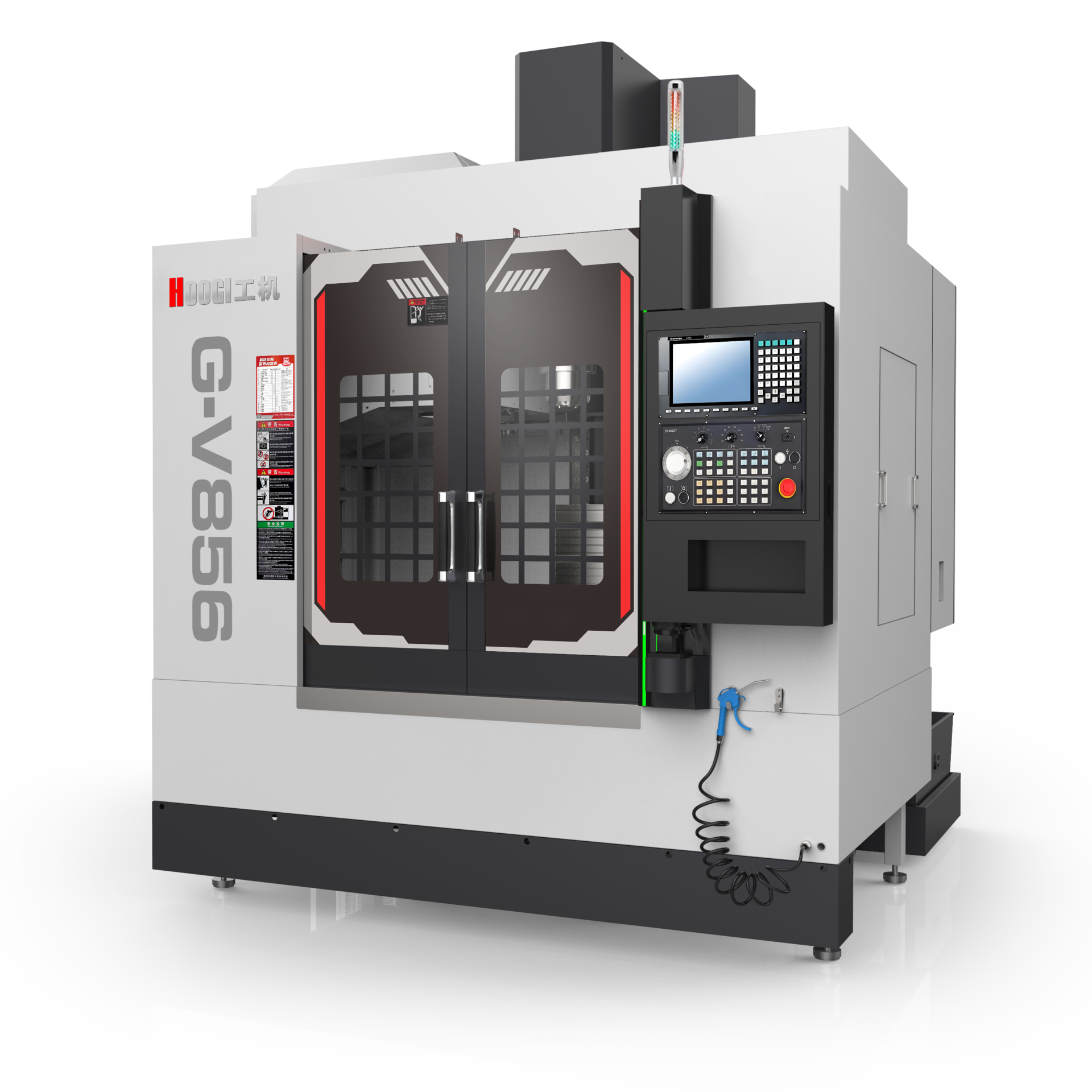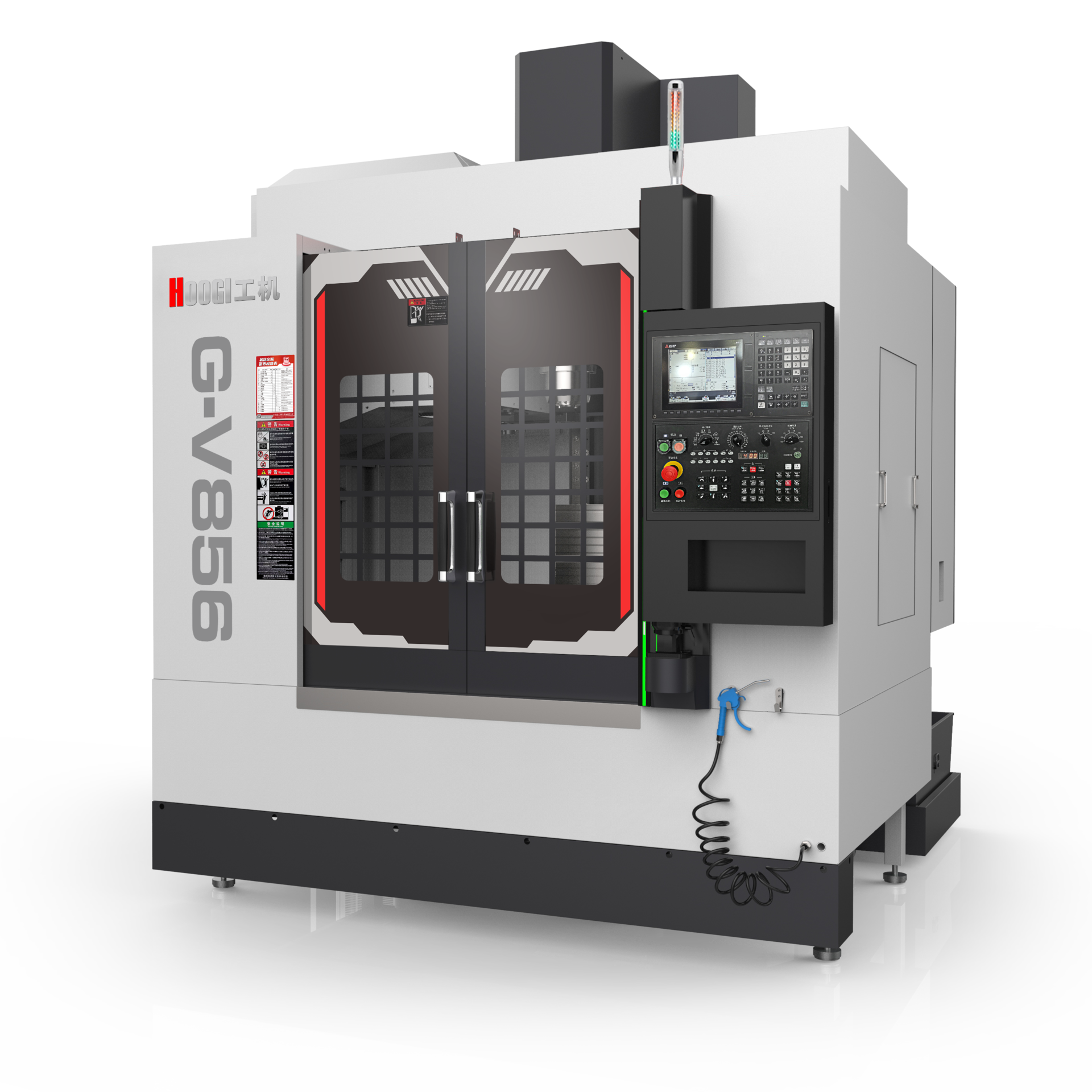 应用领域 application area 机床适用于中小型箱体类、板类、盘类、阀门类、壳体类、模具等复杂零件的多品种大批量加工。 产品特点 Product features 1.公司机床铸件全部采用HT300树脂砂造型,强度高,刚性好。 2.立柱采用人字形设计,稳固厚重,刚性好,变形小特点。 3.机床各运动轴采用全封闭内防护,防水、防油、防尘效果更佳。 4.各轴导轨全部采用进口重载直线导轨,刚性好,精度高。 5.各轴丝杆全部采用进口高速丝杆,运行平稳、精度高。 6.各主要部件衔接处采用传统铲刮工艺,机床的精度和稳定性得到保证。 7.各滑板导轨之间的距离和滑块之间的距离优化设计,机床运行具有更 好的稳定性和精度。 机床参数 Machine parameter