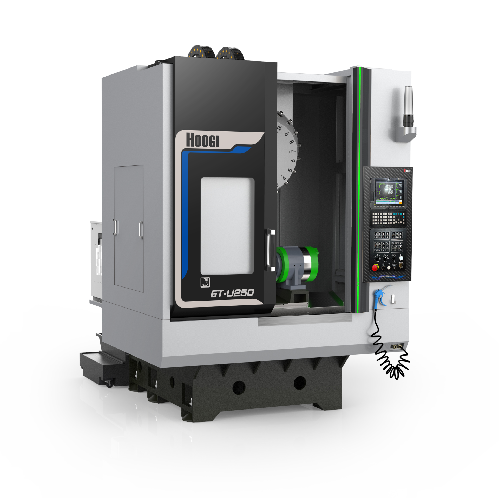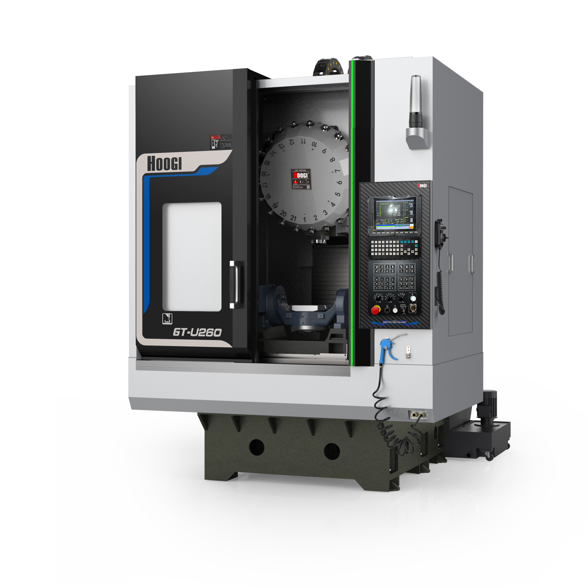 2.五轴转台支架和X向滑板设计成一个整体,机床刚性更强,精度更高。