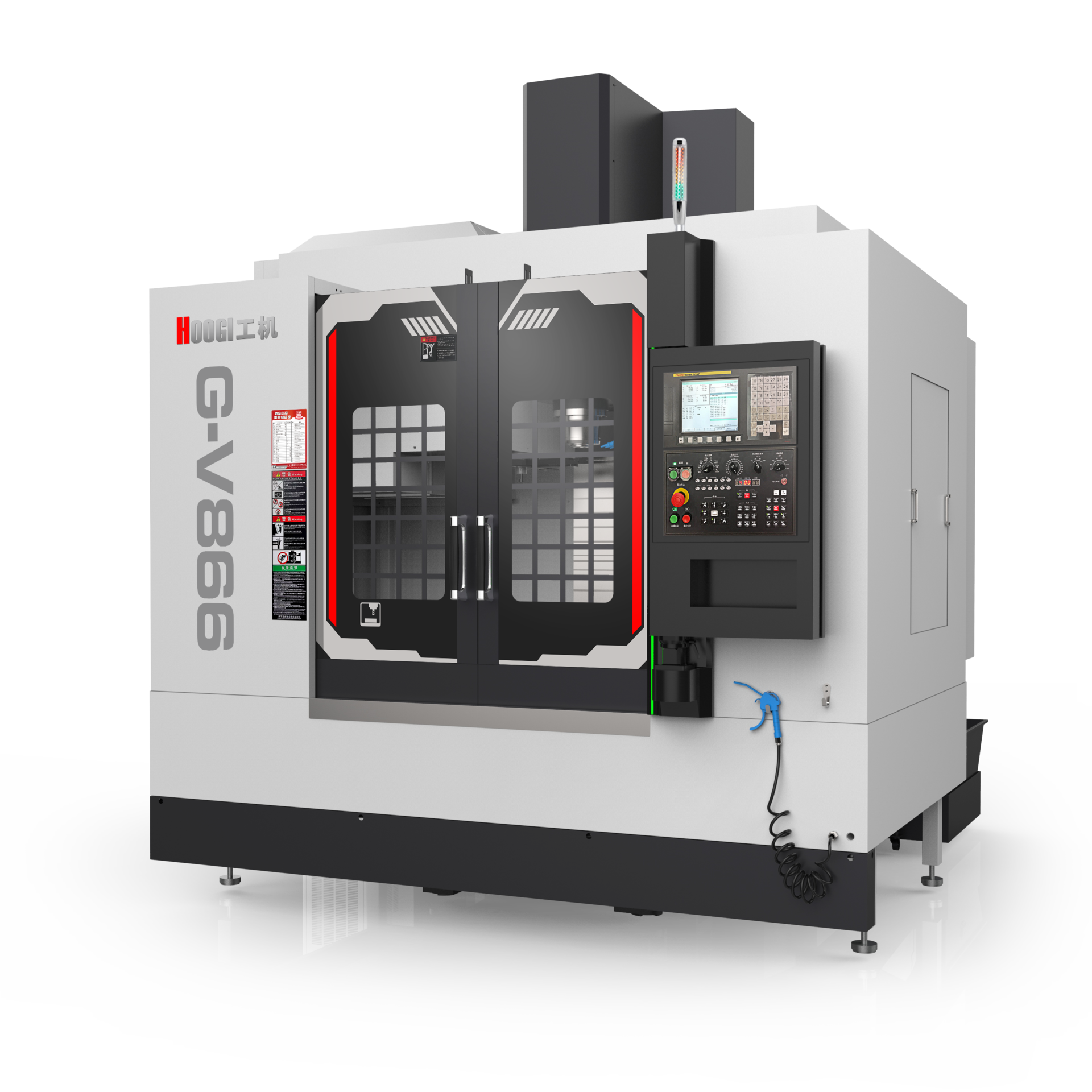 应用领域 application area 机床适用于中小型箱体类、板类、盘类、阀门类、壳体类、模具等复杂零件的多品种大批量加工。 产品特点 Product features 1.公司机床铸件全部采用HT300树脂砂造型,强度高,刚性好。 2.立柱采用人字形设计,稳固厚重,刚性好,变形小特点。 3.机床各运动轴采用全封闭内防护,防水、防油、防尘效果更佳。 4.各轴导轨全部采用进口重载直线导轨,刚性好,精度高。 5.各轴丝杆全部采用进口高速丝杆,运行平稳、精度高。 6.各主要部件衔接处采用传统铲刮工艺,机床的精度和稳定性得到保证。 7.各滑板导轨之间的距离和滑块之间的距离优化设计,机床运行具有更 好的稳定性和精度。 机床参数 Machine parameter